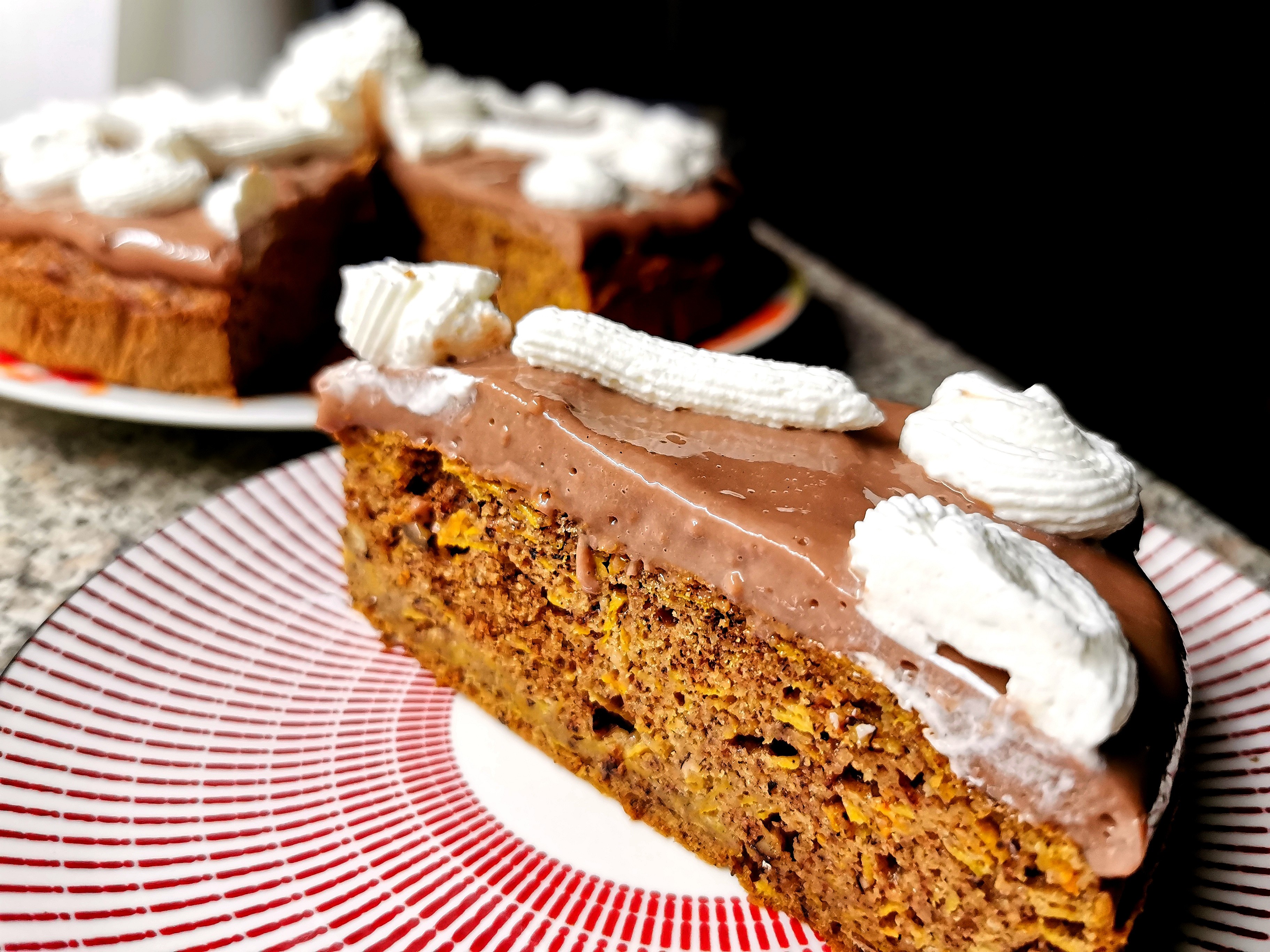 Kada se puding prohladi mikserom sam ga izmešao i premazao ga preko ohlađenog biskvita kojeg sam izvadio i stavio u tanjir za serviranje. Šlag sam umutio i njime ukrasio tortu!