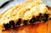 Testo za kore sam odmah zamesio i ostavio ga da se odmara dok ja spremam ostalo. Nastavio sam sa pripremom fila za pitu. Vrućom vodom sam prelilo suve gljive, crne trubače i vrganje, narezao praziluk i sitno nasekao ježevke, naučnog naziva Hydnum repandum, i krenuo sa prženjem. Počeo sam sa prazilukom, a kada je povenuo dodao sam im ježevke. Nakom kraćeg dinstanja uz dolevanje vode u kojoj su stajale gljive dodao sam i pola sitno naseckane ljute papričice, belog luka, po jednu kašičicu mlevenih suvih gljiva kao i gljive koje su se namakale, te sve dinstao da ispari sva tečnost. Fila je spremna može se hladiti, a ja mogu sebi ručak zgotoviti.