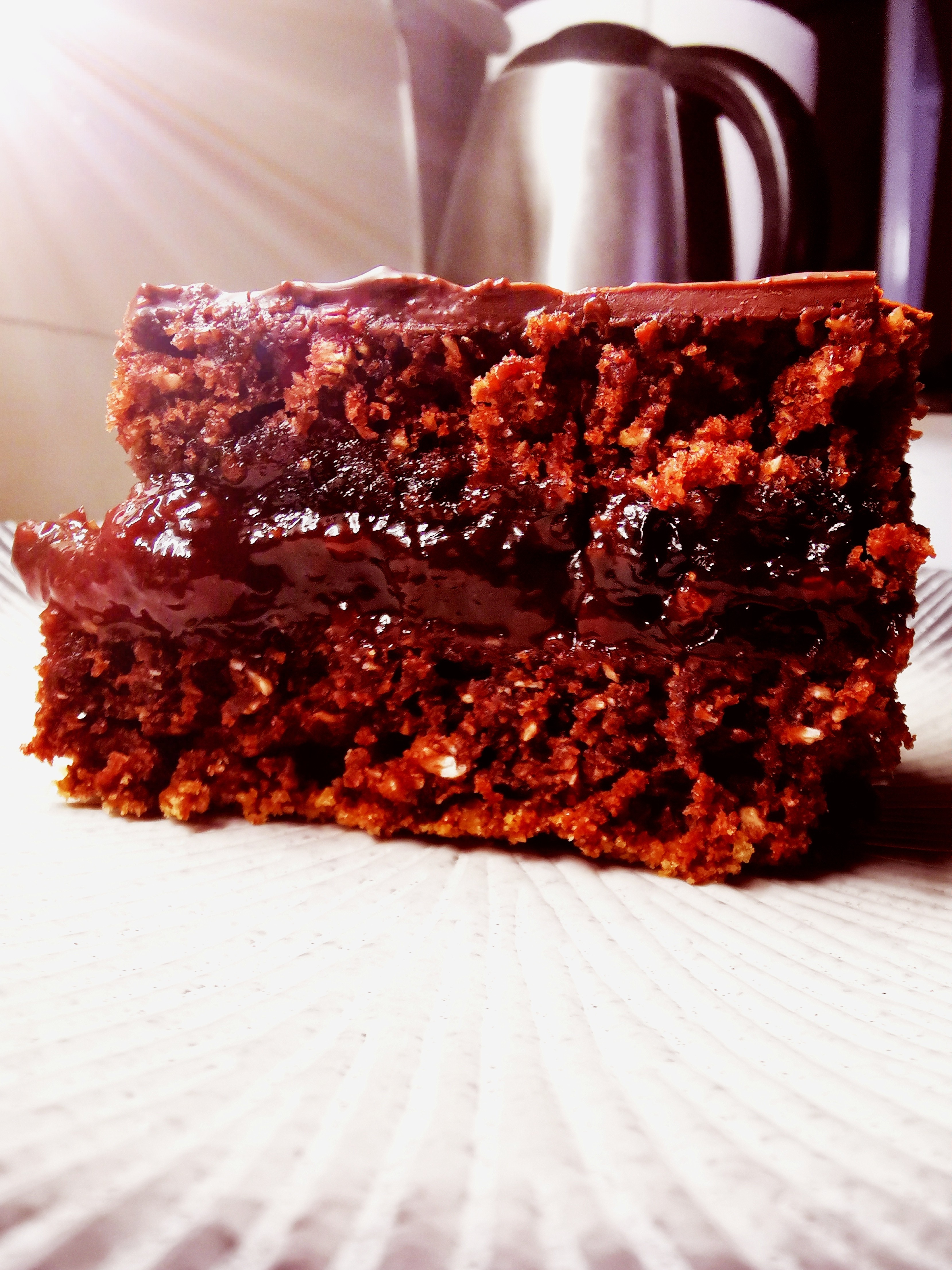 Preko ispečeno kolača prelijte glazurom od čokolade. Čokoladu usitnite i otopite sa uljem i odmah prelijte preko predhodno ohlađenog kolača. Okretanjem pleha sa kolačem u jednu, pa drugu stranu razlijte glazuru od čokolade i ostavite da se ohladi i stegne.